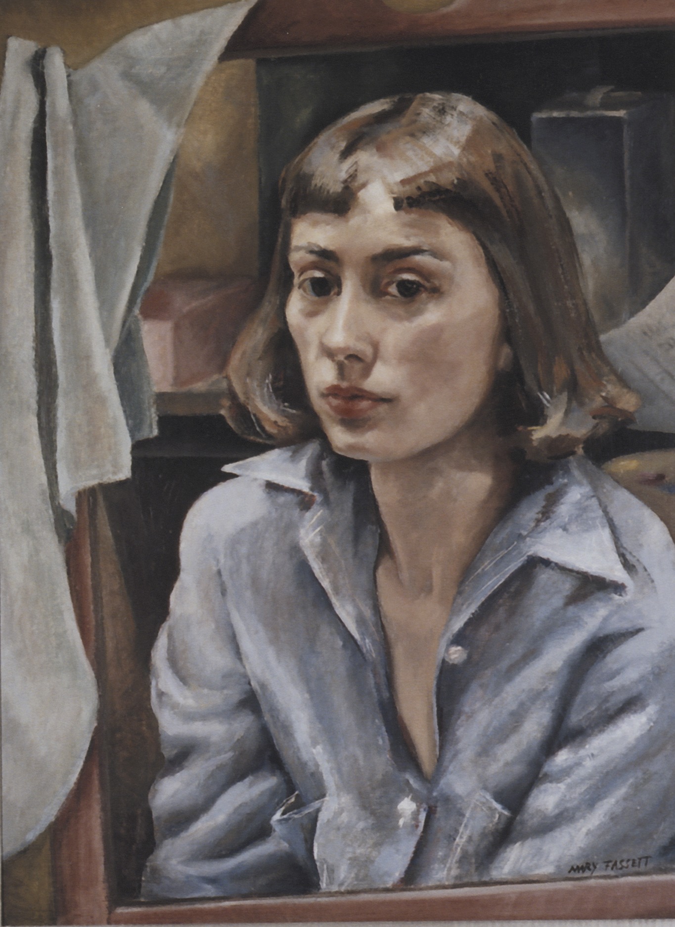 Teaching myself to draw was a part of my daily life as a housewife and (after I was 26) mother. Drawing is disciplined observation. When there was no time to go out into a landscape or to set up a still life, I used to draw from pictures in magazines.  Then I tried various schemes indoors and out. I studied my own reflection as objectively as I would a landscape, looking